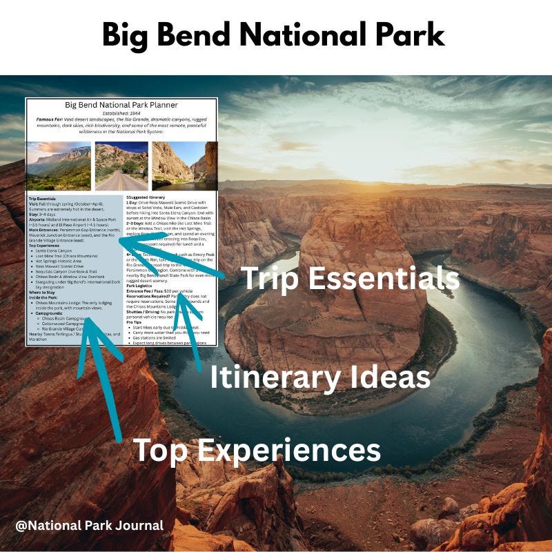Each month we share a new planning guide to a specific National Park exclusively for paid subscribers. These printable resources provide a simple, useful overview: maps, PDFs, and essential links to help you plan quickly without wading through a 20-page guide.